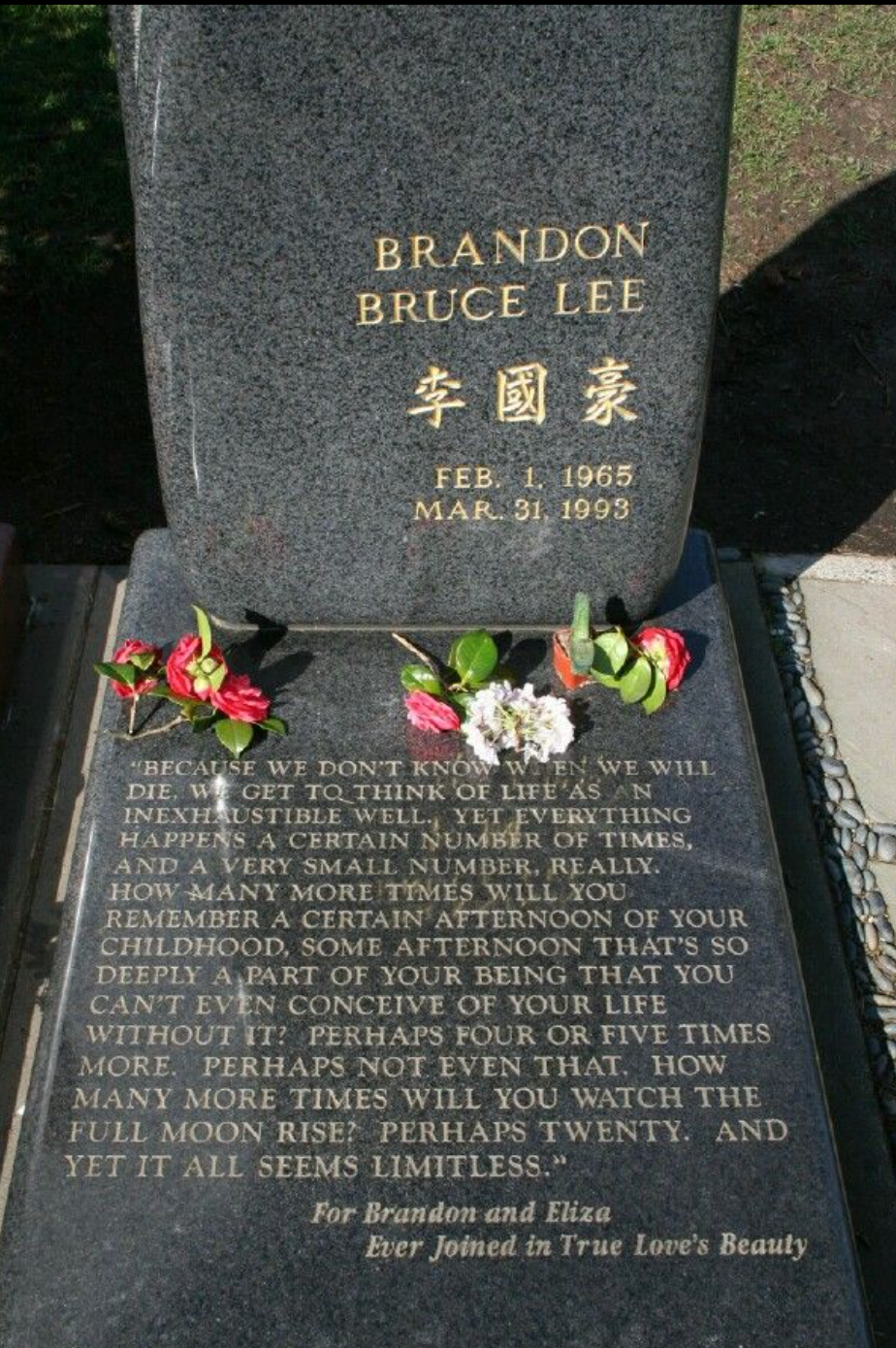 По-рано, по време на снимките на “Гарванът”, един от приятелите на Лий го питал за множеството сложни екшън сцени във филма. “Никой никога не се наранява, когато прави такива неща.” – успокоил го Лий.