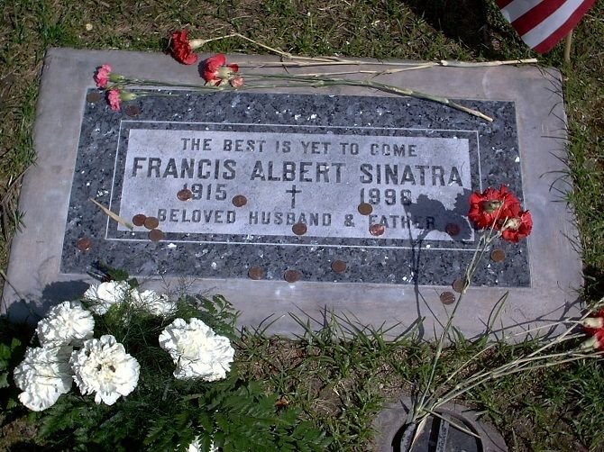 Прочутият Синатра е погребан с бутилка уиски, запалка Zippo и десет цента, за да може да се обади по телефона, ако се наложи. Върху мемориалната плоча на гроба му е изписана фразата: “Всичко най-добро предстои”.